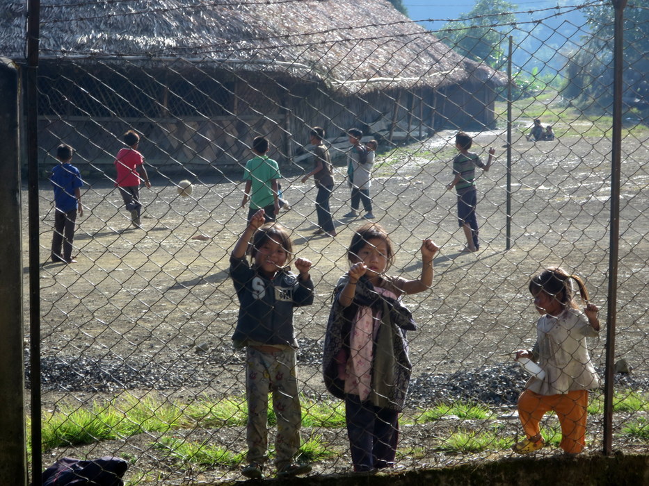 Children playing in front of the chief's house
