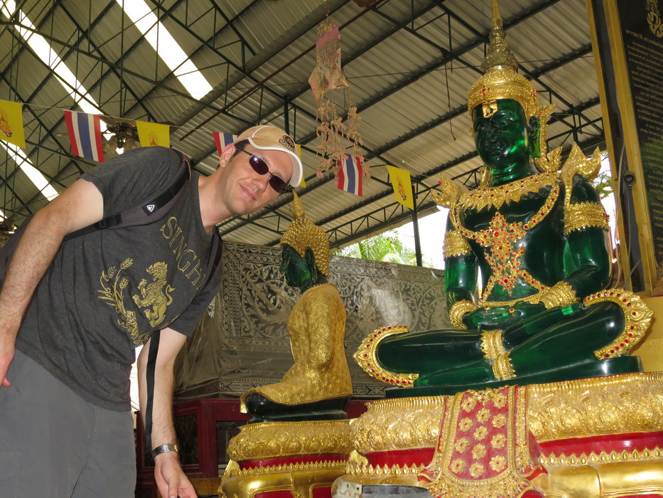 Cousin Dux and a green Buddha